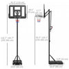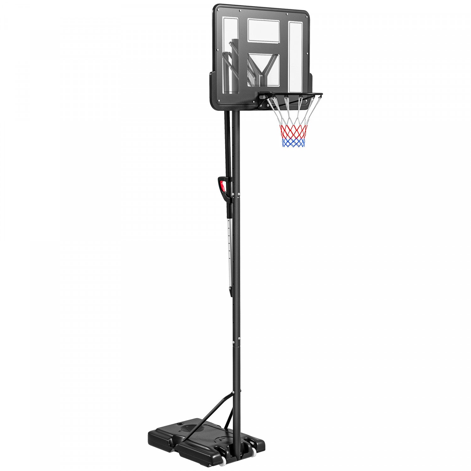 | Additional Information | - Colour: Black; - Material: Steel, PE, Plastic; - Backboard Dimensions: 29.5"H x 43.3"W x 2"D (75 x 110 x 5cm); - Overall Height: 116.1"-143.7" (295-365cm); - Basketball Hoop Height: 7.7', 8.2', 8.7', 9.2', 9.5', 10' (2.35m, 2.50m, 2.65m, 2.80m, 2.90m, 3.05m); - Base Dimensions: 35.4"L x 23.6"W x 5.9"H (90 x 60 x 15cm); - Hoop Dimensions: 17.7" Dia. (45cm); - Base Capacity: 143 lbs (65kg) water, 165 lbs (75kg) sand, 187 lbs (85kg) water and sand; - Item label: A61-050V00BK; |