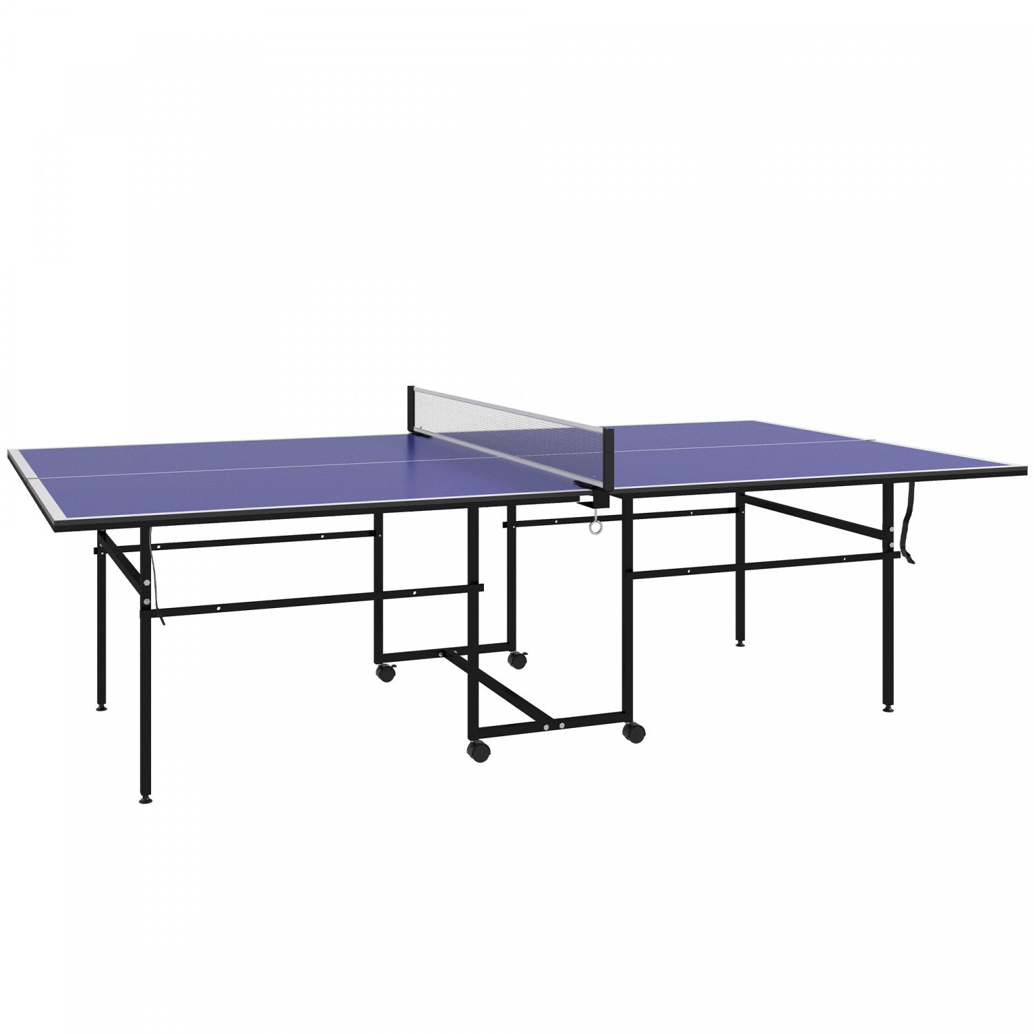 Key Features | - Full size tennis table, suitable for both professionals and amateurs; - Can be folded into a compact size and with a lock system to keep the folding status; - With four rolling casters with brakes, easy to move and keep stable in place; - Levelers on feet for a level top and prevent scratches; - Made of MDF and steel frame for reliable play experience; - For any game room, gym, office entertainment and more; - Comes with a game net, two paddles and three balls; |