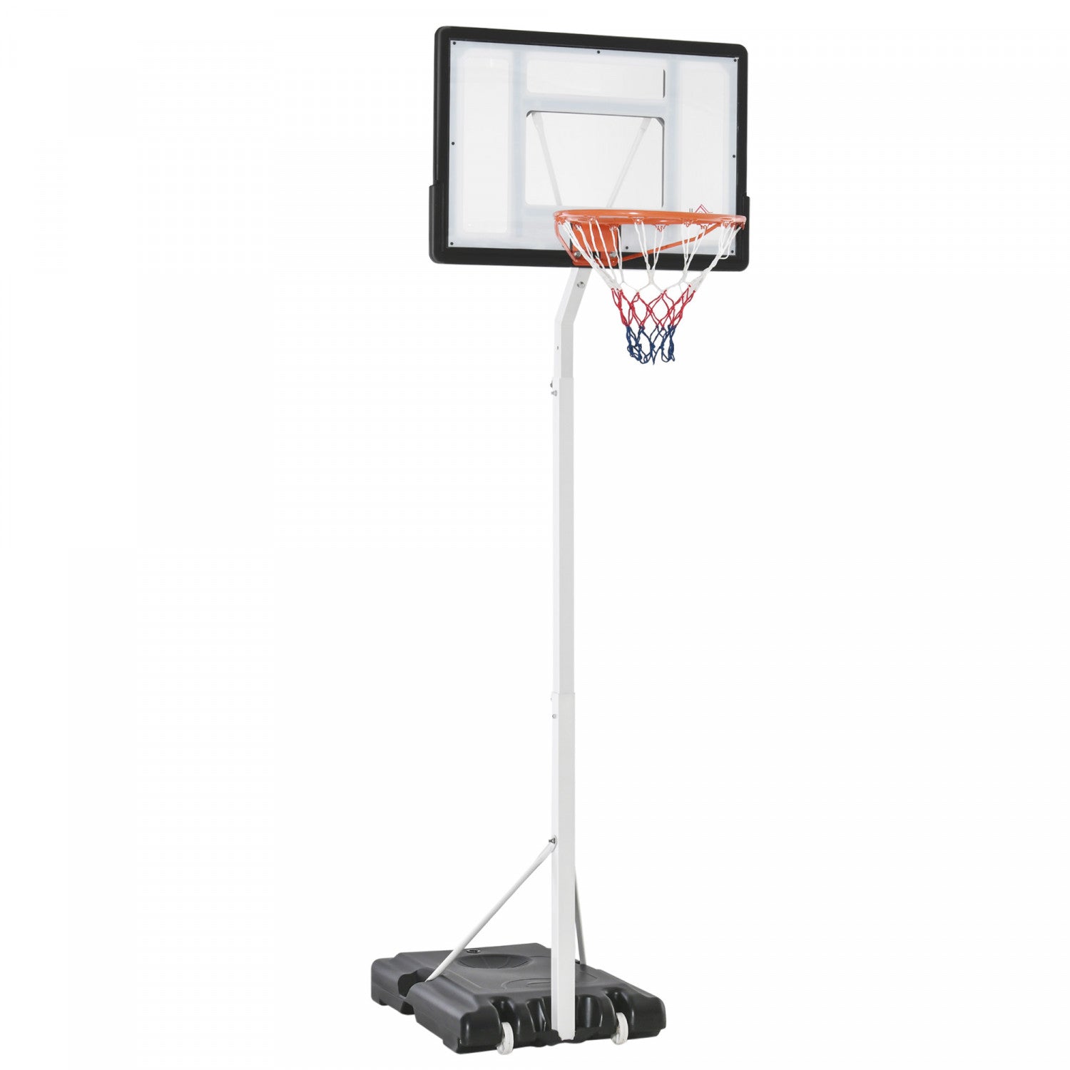 | Additional Information | - Color: White; - Materials: Steel, PE and HDPE; - Backboard Size: 32.3" W x 23.5" H (82 x 60 cm); - Base Size: 34.25" L x 23.5" W x 6" H (87 x 60 x 15 cm); - Hoop Size: Φ15.7" (40 cm); - Overall Height: 102.25" - 122" (260 - 310 cm); - Hoop Height: 82.75" - 102.25" (210 - 260 cm); - Base Capacity: 88lbs (40kg) water, 99lbs (45kg) sand; - Item label: A61-029WT; |