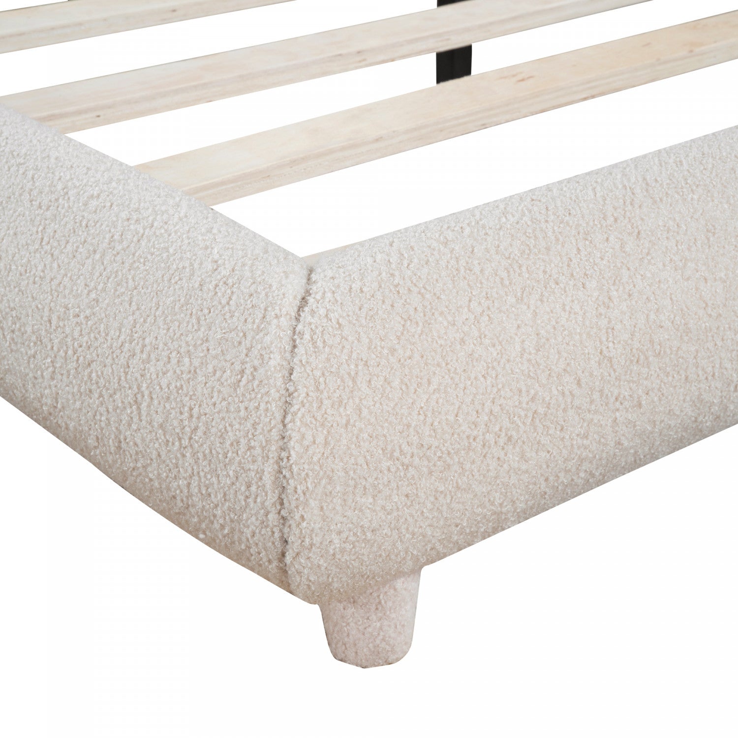 Camille Platform Bed with Curved Headboard and Luxurious Boucle Upholstery,Queen Size,White Queen Bed
