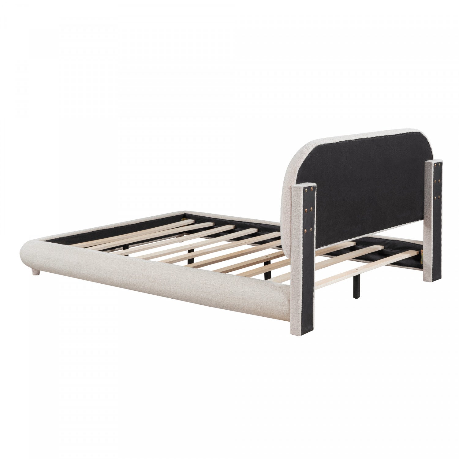 Harold Platform Bed with Boucle Upholstered Round Curved Headboard and Low-Profile Frame,Queen Size,White Queen Bed