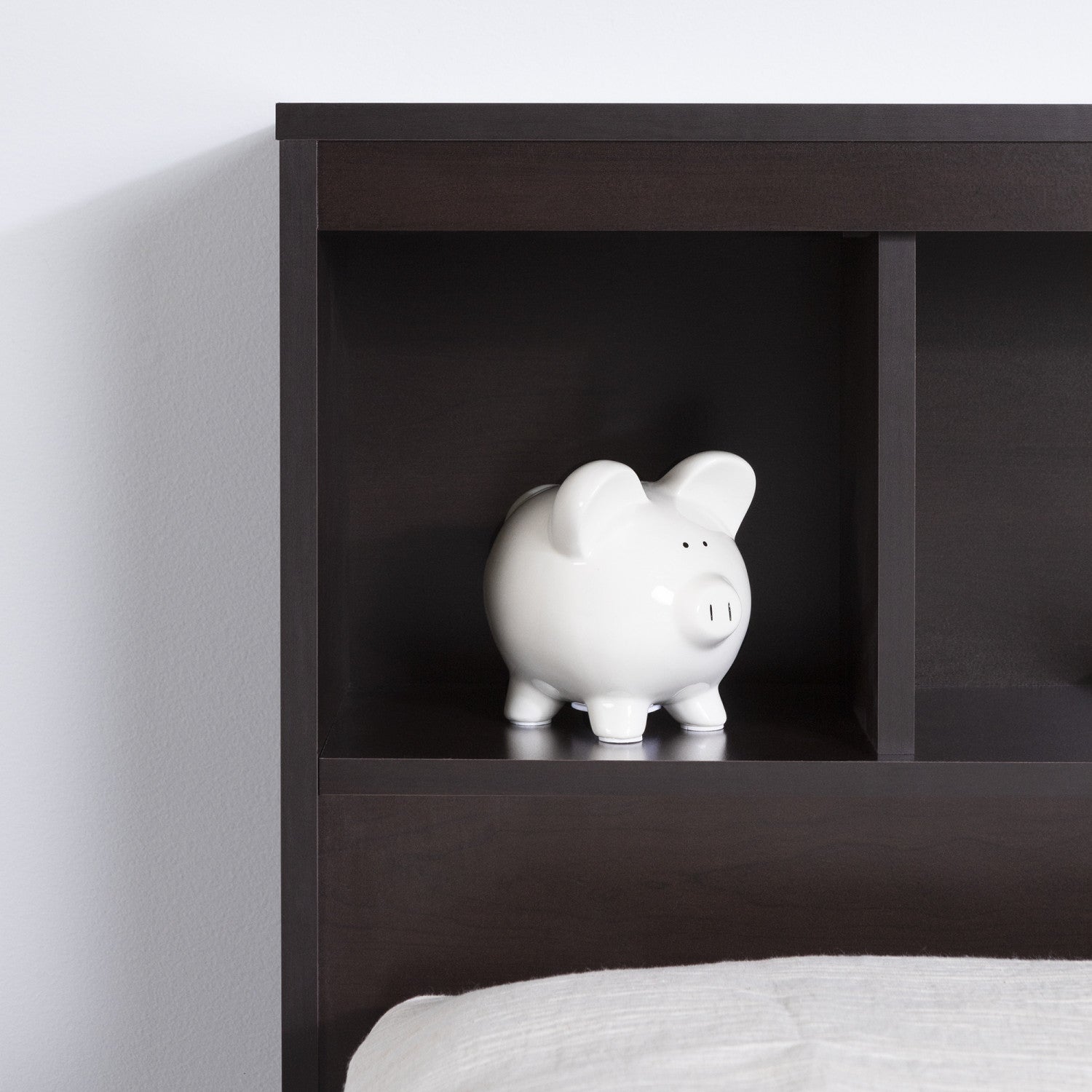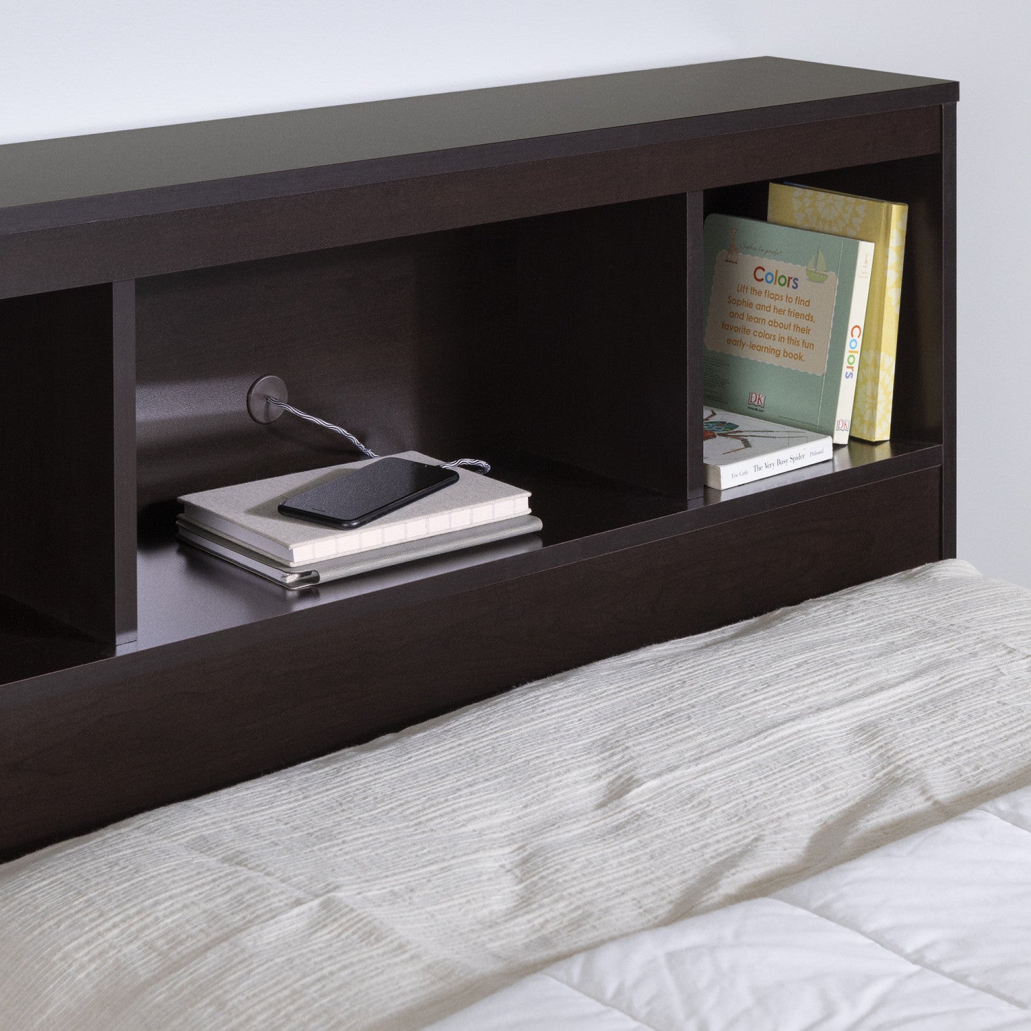 Clean lines. Relax in bed after a long day! With its 3 easy-to-access open storage compartments and top shelf, this bookcase headboard is perfect for fulfilling bedside storage needs, keeping your reading materials and personal items organized and close at hand when you need them. Practical storage solution this contemporary bookcase headboard features practical open storage spaces separated by sturdy and reliable fixed shelves. It also offers a hole in the back panel for cables to pass through for better wire management. The bookcase is easy to keep clean with a soft dry cloth.