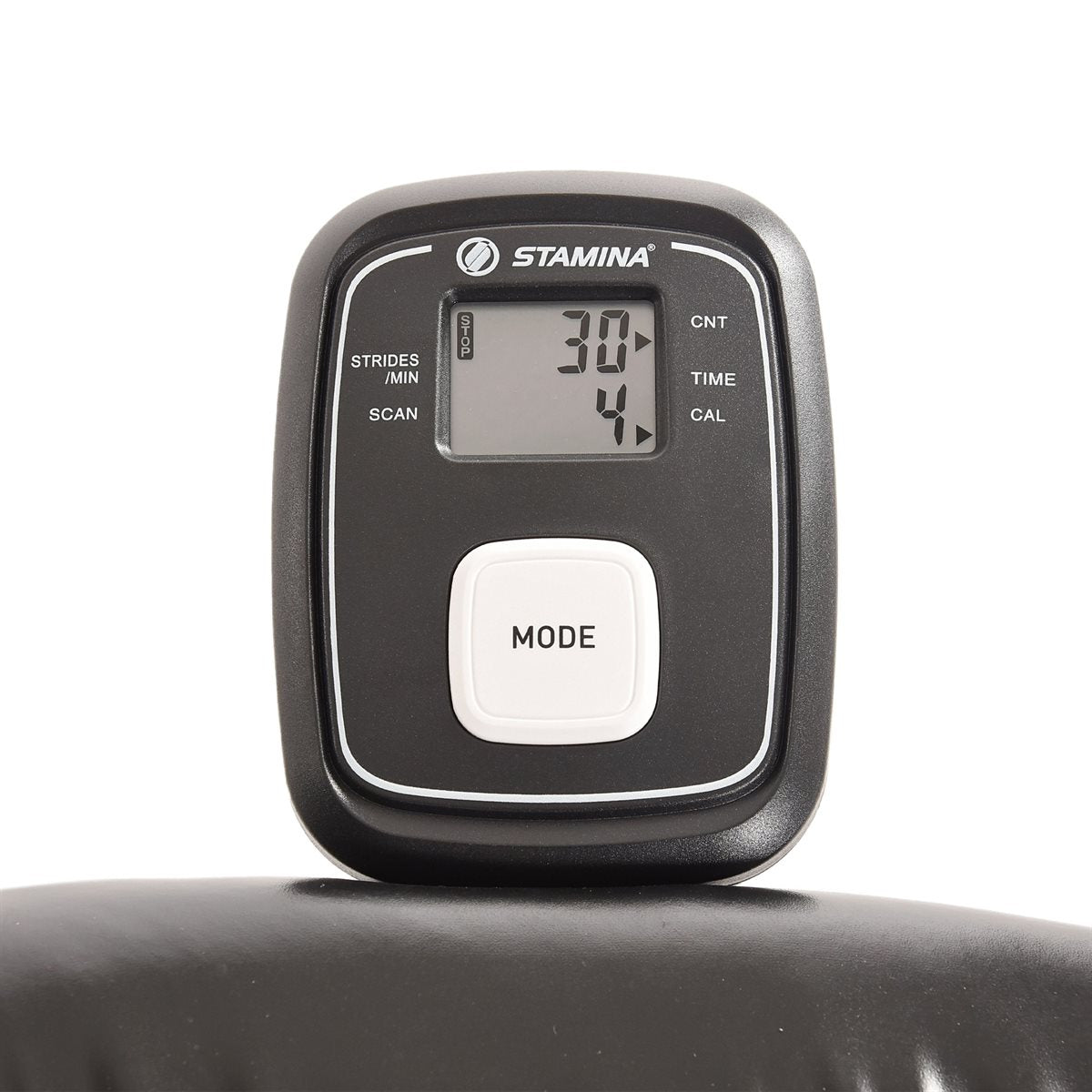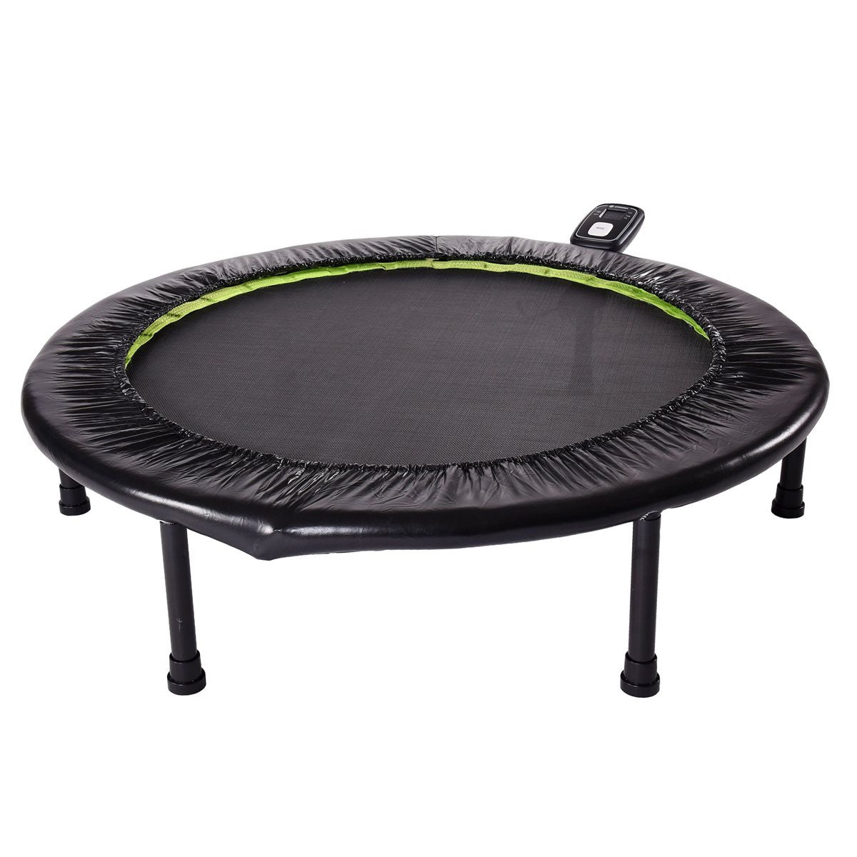 Discover all that the Stamina Fitness Trampoline has to offer with three free online workouts. These beginner-friendly, trainer-guided routines will teach you the ins and outs of your rebounder while also adding a fun new way to burn calories and efficiently tone muscle. You'll appreciate the large, heavy-duty jumping surface on this trampoline. Thirty tension bands provide the level of resistance you need to fuel your workout. Take a glance at the LCD monitor to track jump count, time, calories and jumps per minute. The elastic safety pad securely fits over the outside of the trampoline in order to prevent slippage or accidents. Six detachable legs provide stability during movement. To make storage easier, it has a folding frame. Build total-body strength and improve your cardiovascular health with the Stamina Fitness Trampoline.