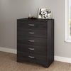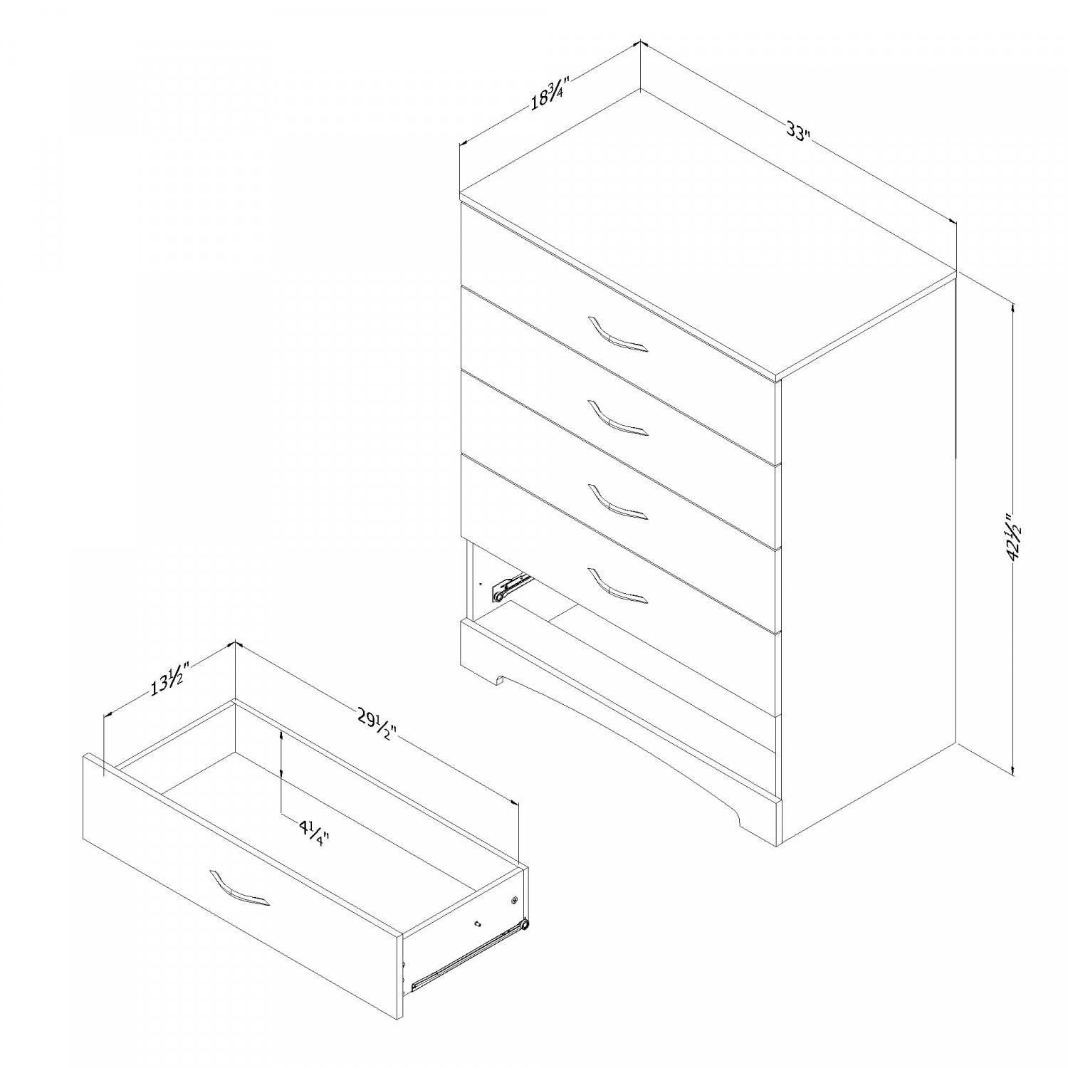 Contemporary lines and finish. This step one 5-drawer dresser has a timeless look and blends in easily with any decor. The contemporary lines are softened by the curved kick plate, and metal handles add character and value to the furniture. The neutral, modern style makes it suitable for men’s and women’s, providing plenty of storage space in this attractive piece of furniture. Practical storage and organization this bedroom furniture collection was designed just for tighter spaces! Featuring 5 practical drawers with metal handles, the dresser provides plenty of room for clothes, linens or general storage. The drawer slides are made of metal and include dampers and catches, creating a secure environment for babies and kids.