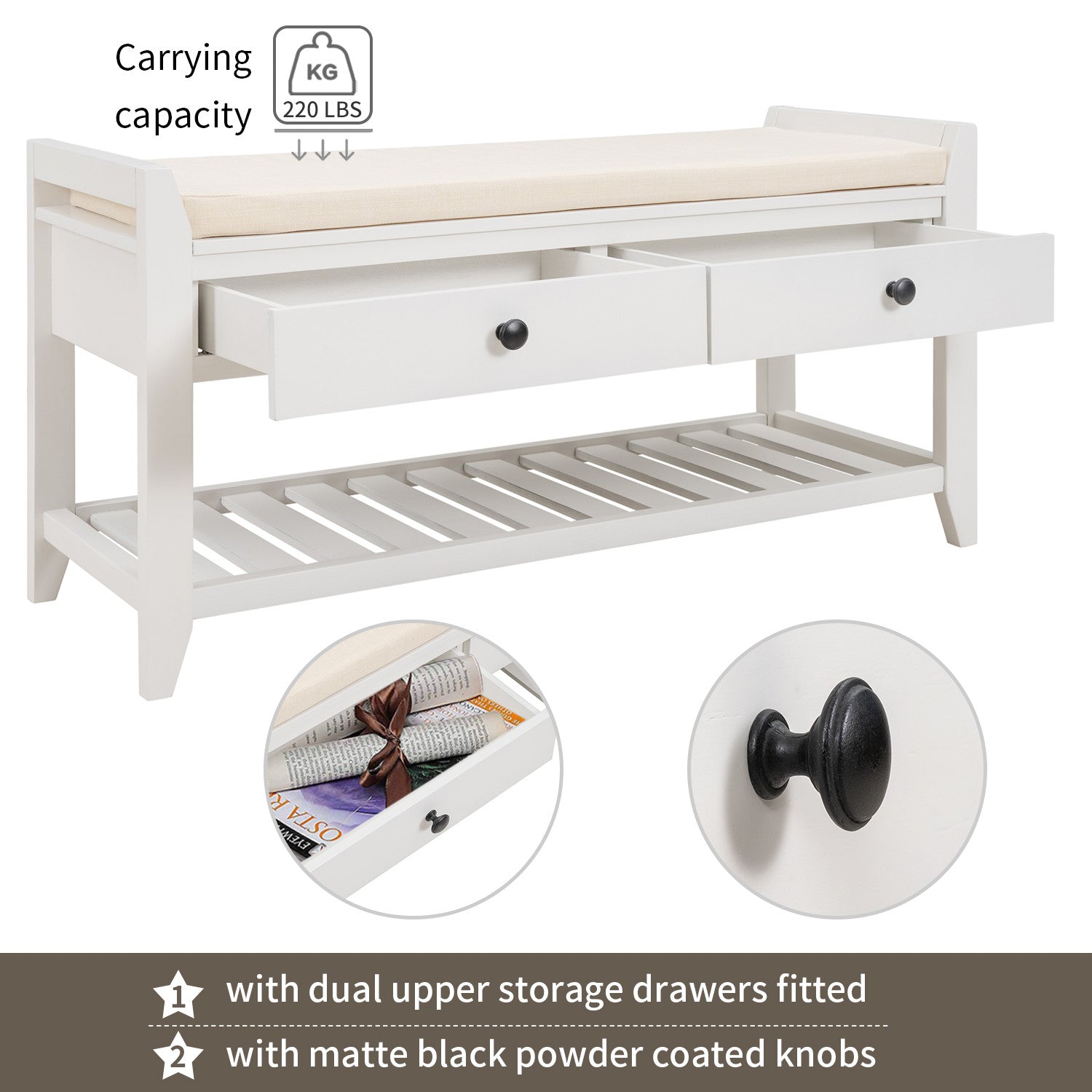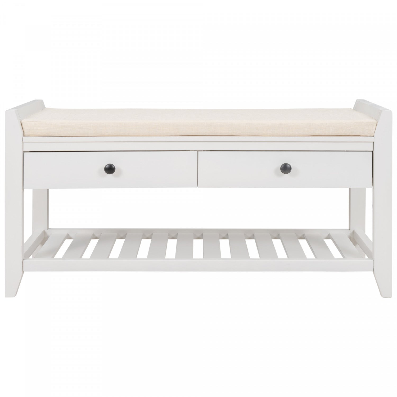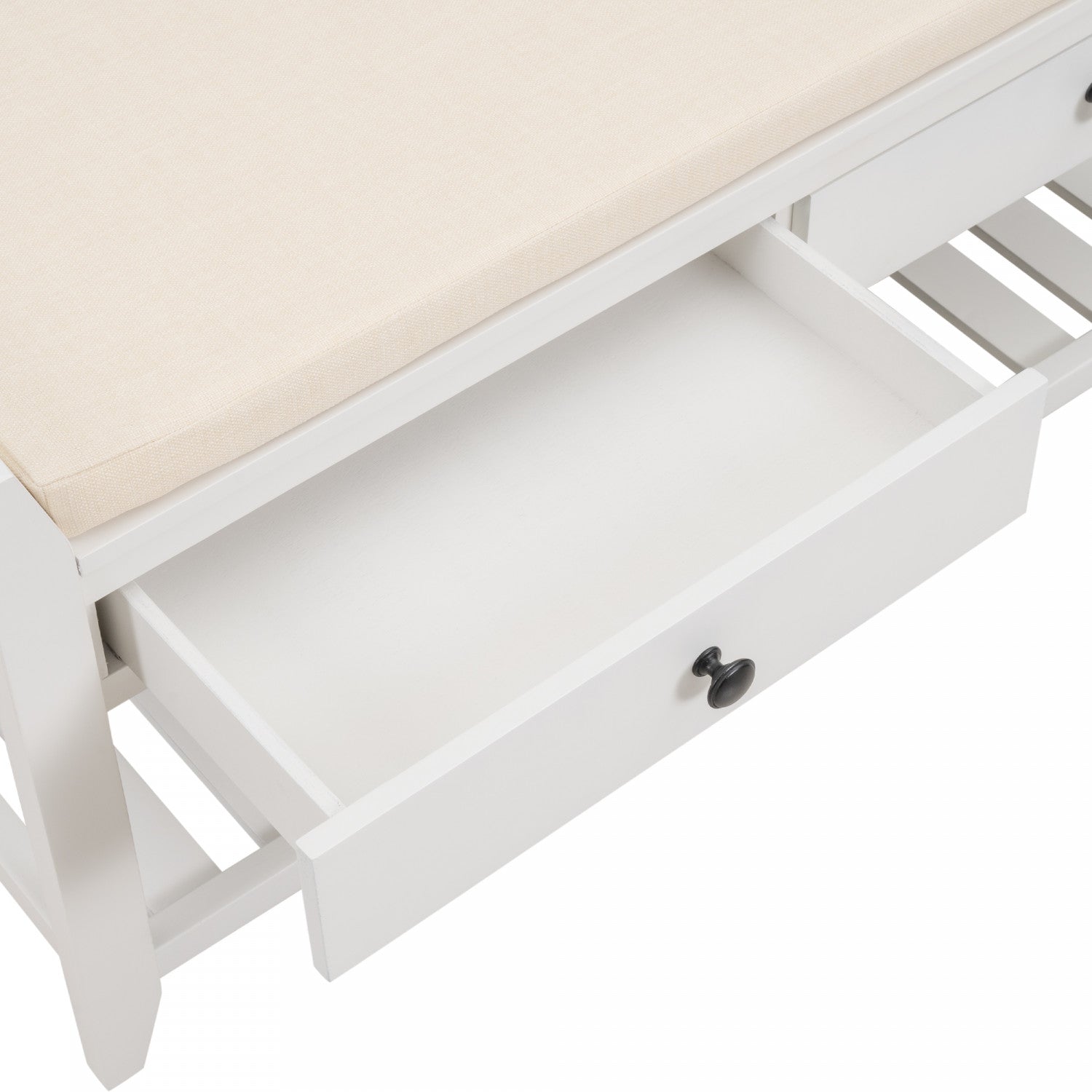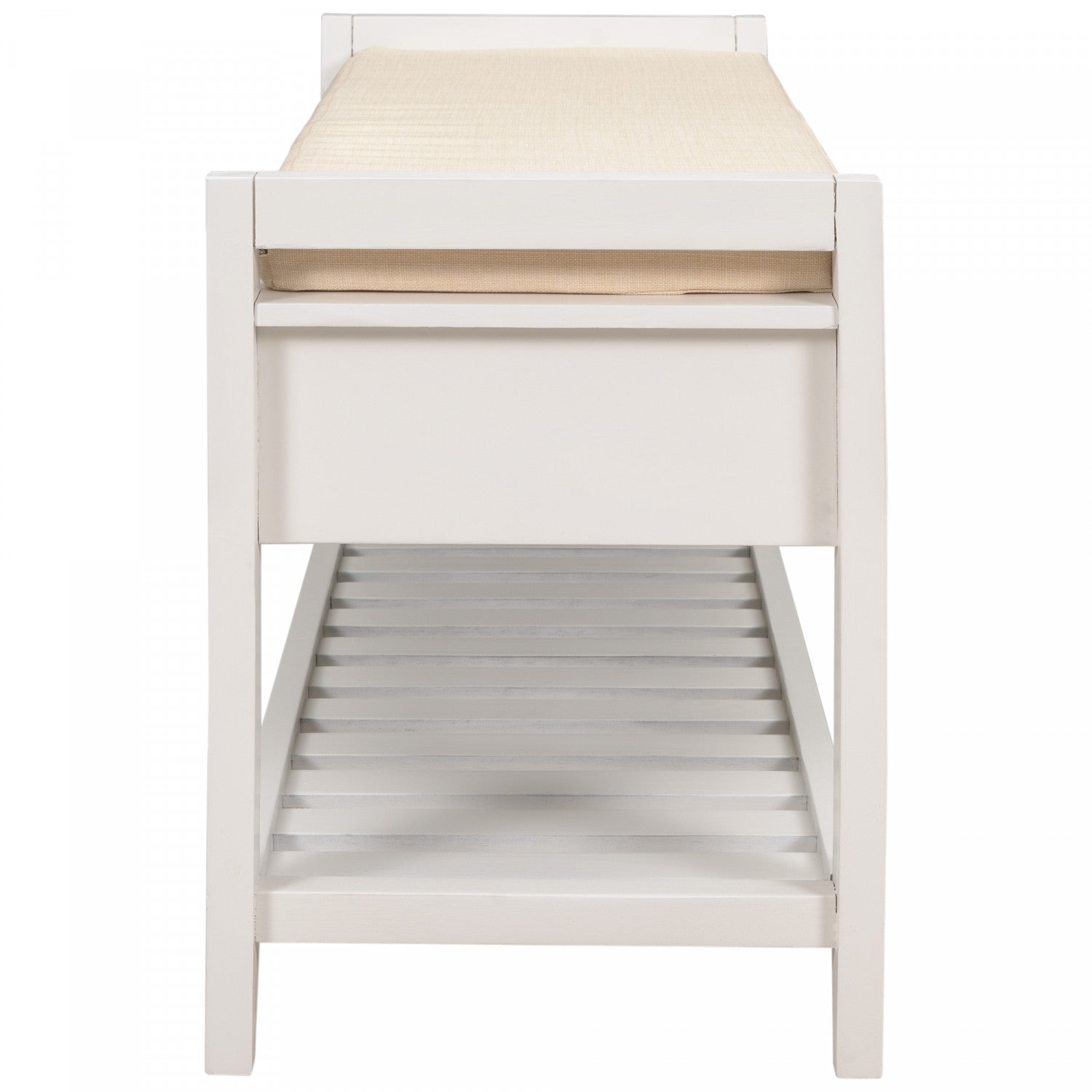 Stephanie Pine Wood Shoe Rack Bench With Cushioned Seat With Storage Drawers - White