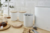 Add some Scandinavian-inspired style to your kitchen with Swan’s Nordic set of 3 storage canisters. Both secure and sophisticated, each canister is made from durable carbon steel, topped with an airtight bamboo lid to keep your coffee, sugar, tea and other perishables fresh for longer. The containers have a spacious capacity of 1.84 litres, letting you store a large quantity of loose ingredients inside each one. The matching set features a soft touch finish, coated in the perfect colour to match the rest of the collection, with a wooden-textured lid to create a warm, calming appearance on your countertop.