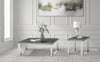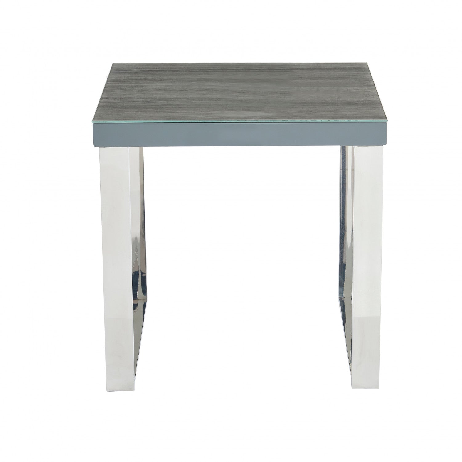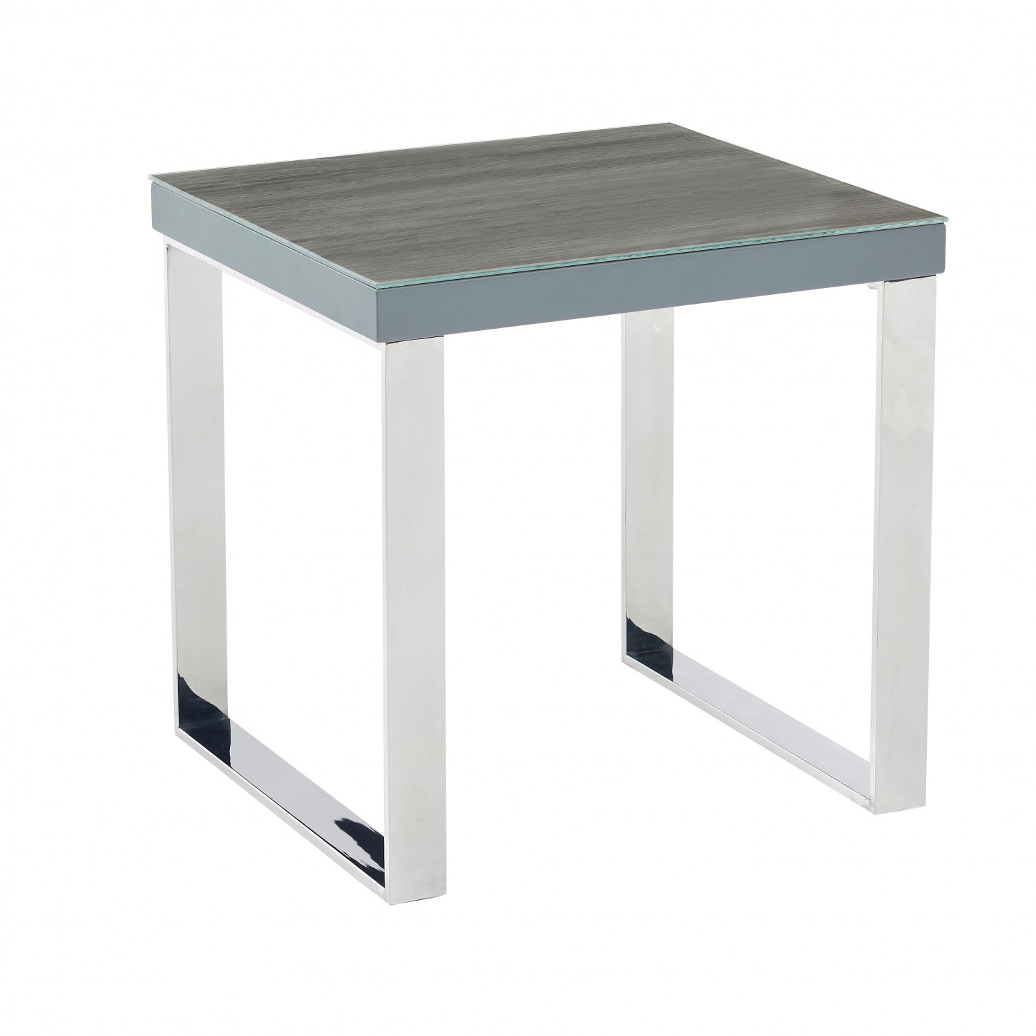 The gleaming surfaces of the Sylph Collection create a distinctly modern look for your living room. The eye-catching tabletop is crafted from durable engineered wood and crowned with a beautiful grey-toned faux wood laminate for a full-grain textured look, topped off with a 5mm glass coating to give the whole surface a luxurious lacquered appearance. Matte painted grey sides blend in with any decor while two continuous open metal frames support the table’s sides, with a high-shine chrome finish to complete the effect. High on style and low in clutter with its sleek modern profile, your living room never looked better.