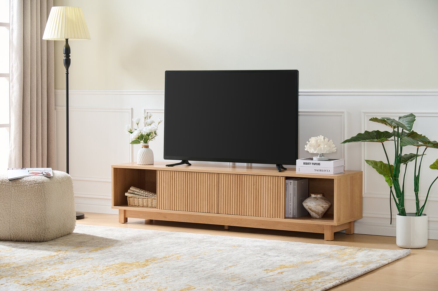 | Primary Construction Material | Medium Density Fibreboard (MDF), Particleboard Particleboard is created by compressing wood chips and resin together, producing an affordable and stable wood alternative. This man-made product is a great base for veneers, laminates and other finishes. |