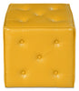 Spice up your space by welcoming this Talbott ottoman into your home. This cube ottoman is tufted with five buttons on each side and has a unique button-weave texture. A faux leather cover makes this fun ottoman easy to maintain so you can use it as a seat or as a place to kick your feet up. Wrapped in a yellow hue, this diced-shaped ottoman is the epitome of modern style and will make an elegant statement in your favourite room.
