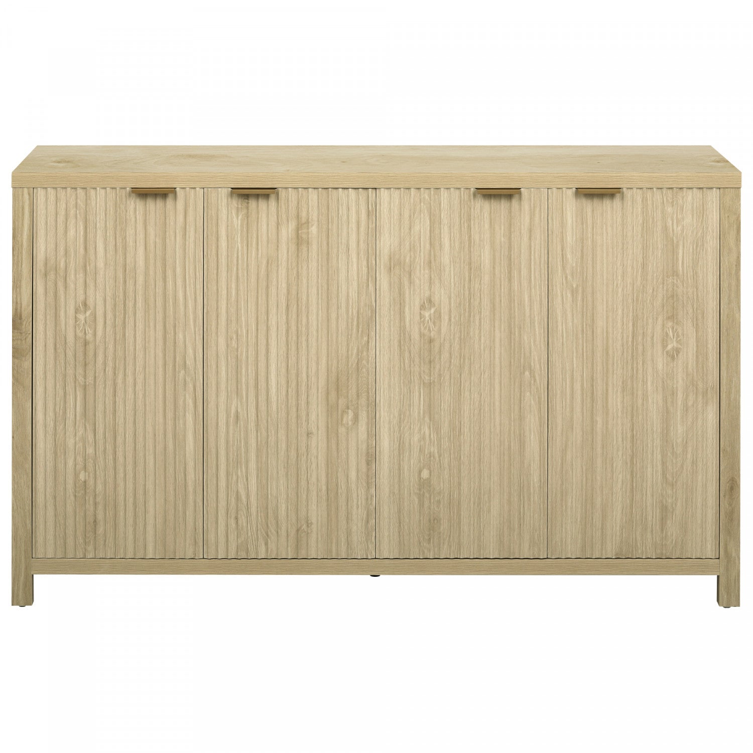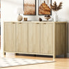 The 55" fluted buffet cabinet blends modern elegance with farmhouse charm. Crafted from durable engineered wood, it features a unique wave-textured fluted design, gold handles, and four spacious cabinets with adjustable shelves for customized storage. Perfect for kitchens, dining rooms, or living spaces, this versatile piece offers a smooth, wide tabletop for serving or display. Soft-close hinges and an anti-tip design ensure safety and durability, making it a stylish and functional statement in any home.
