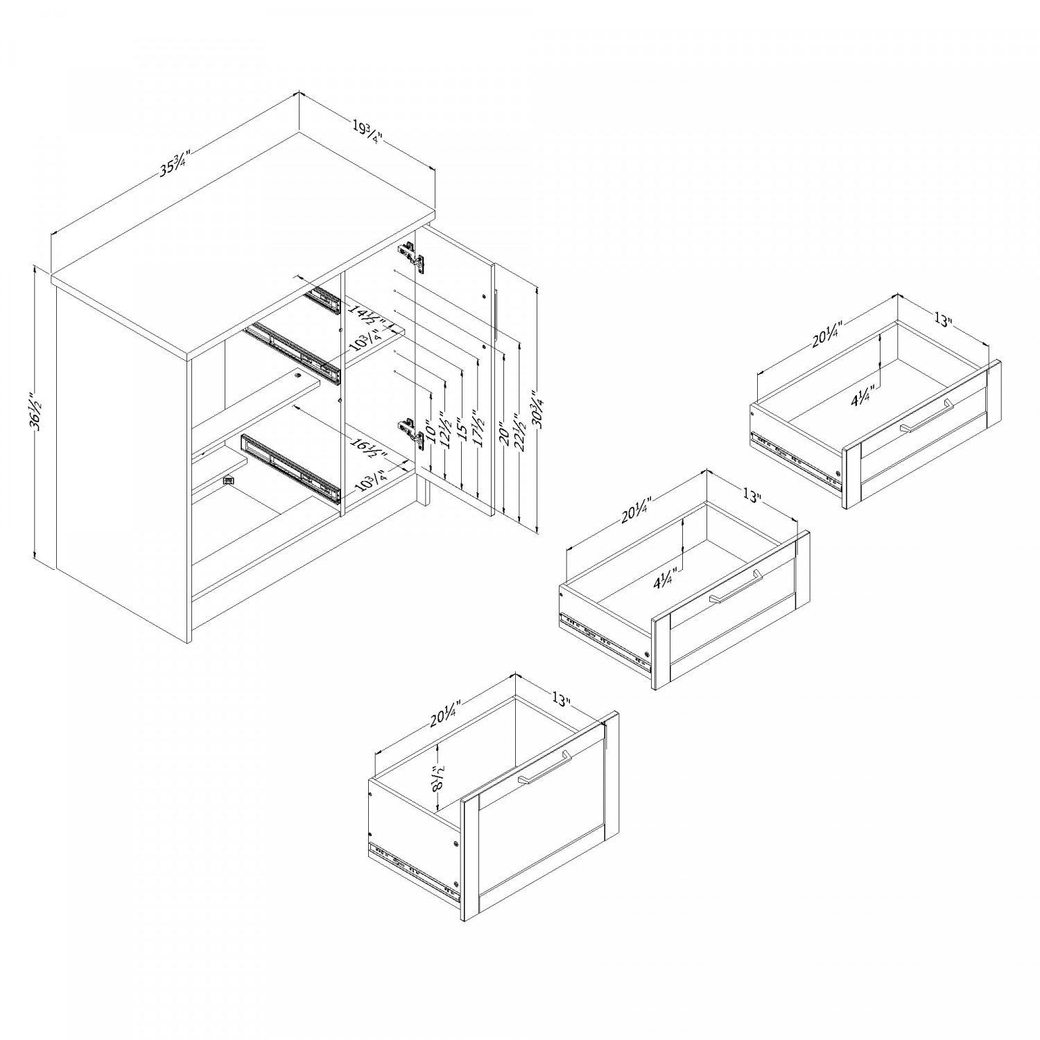 Width: 35.75" (90.8 cm) Height: 36.5" (92.7 cm) Depth: 19.75" (50.2 cm)