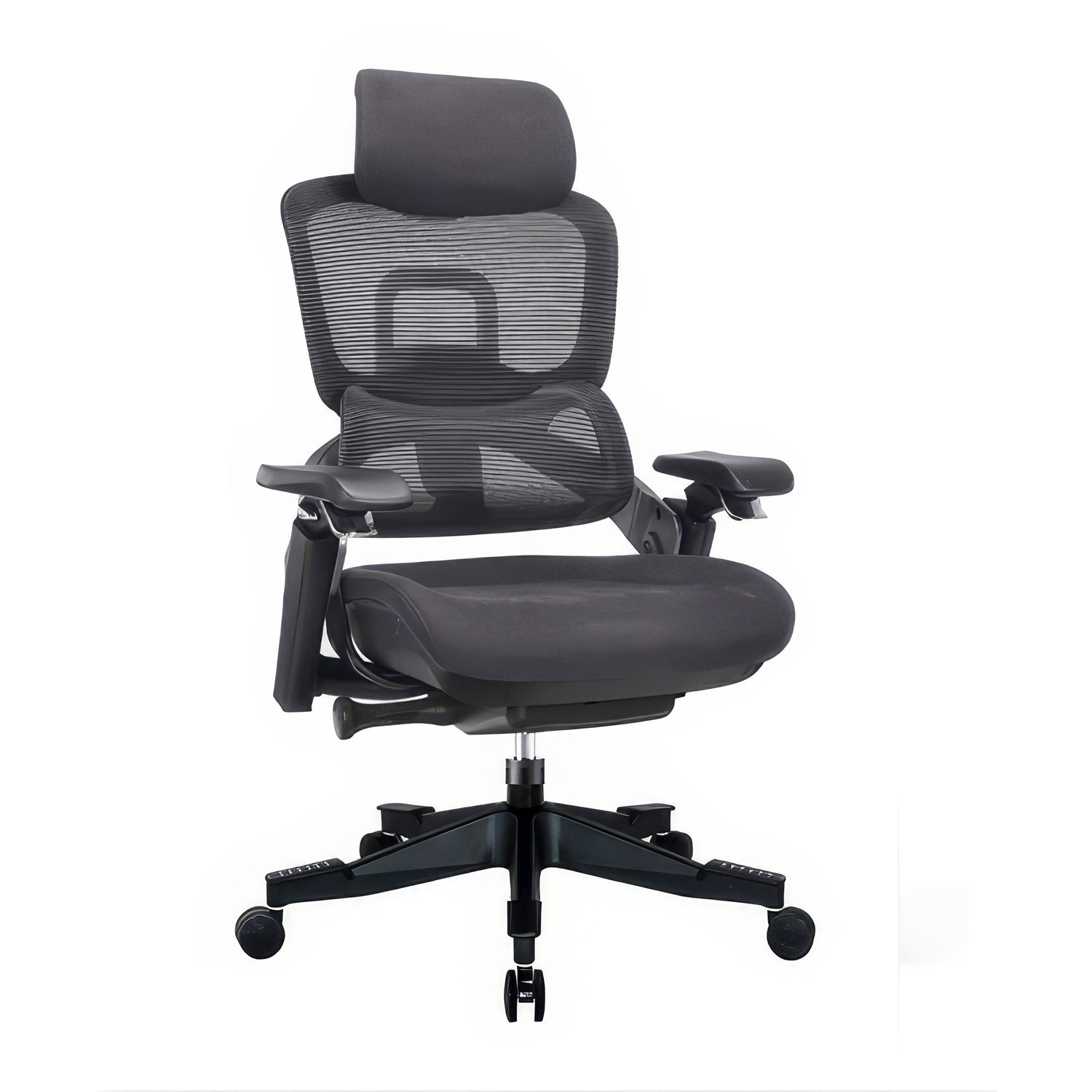 The TygerClaw designs unparalleled comfort with our high-end luxury high back ergonomic chair. The whole black mesh back and fabric seat ensure breathability and plush support, while the 3D headrest and smart synchronized adjustments offer customized ergonomics. Enjoy a sleek, durable finish, and innovative features armrests with cable control and a retractable leg rest. Glide smoothly on 60R PA castors and a robust R350mm nylon base for effortless mobility and stabilit.