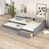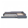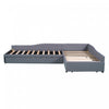 The upholstered double twin-size daybed is a smart, space-saving solution for your home. Designed with soft grey linen fabric, it combines two twin beds and a pull-out trundle to accommodate up to three sleepers. Ideal for guest rooms, studios, or small apartments, it also includes a large under-bed drawer for convenient storage. A sturdy plywood frame and thick slats ensure long-term durability and comfort—no box spring needed. This versatile piece serves as both a stylish sofa by day and a cozy bed by night.
