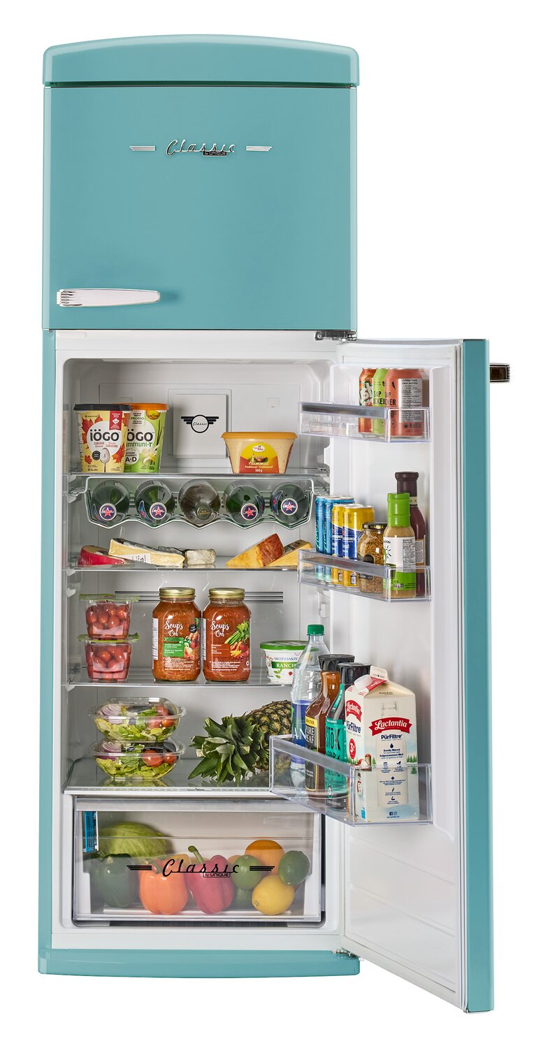 Retro Styled Top Freezer Refrigerator: Adjustable Glass Shelves: Frost Free Cooling: UltraFresh Filters: Energy Star Certified: Wine Rack Storage: |