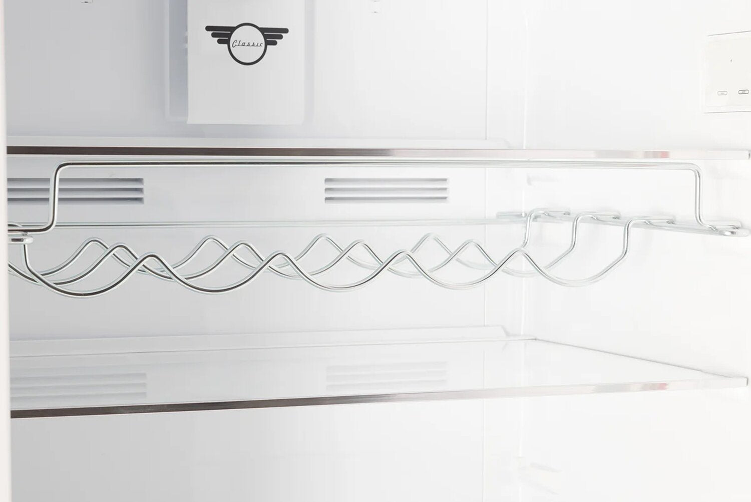 Retro Styled Top Freezer Refrigerator: Adjustable Glass Shelves: Frost-Free Cooling: Efficiency Modes: ENERGY STAR® Certified: Wine Rack Storage: |