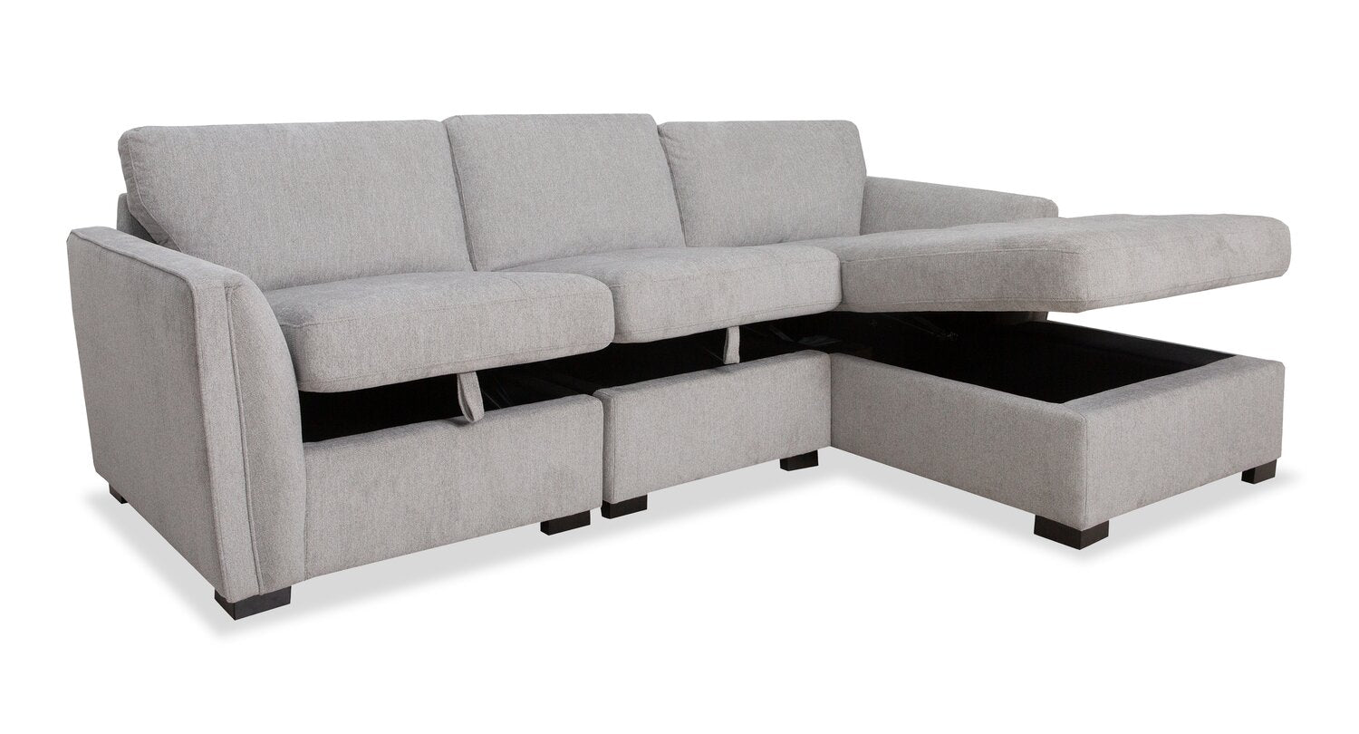Vault 3-Piece Right-Facing Sectional with Storage Chaise and Two Storage Chairs - Grey