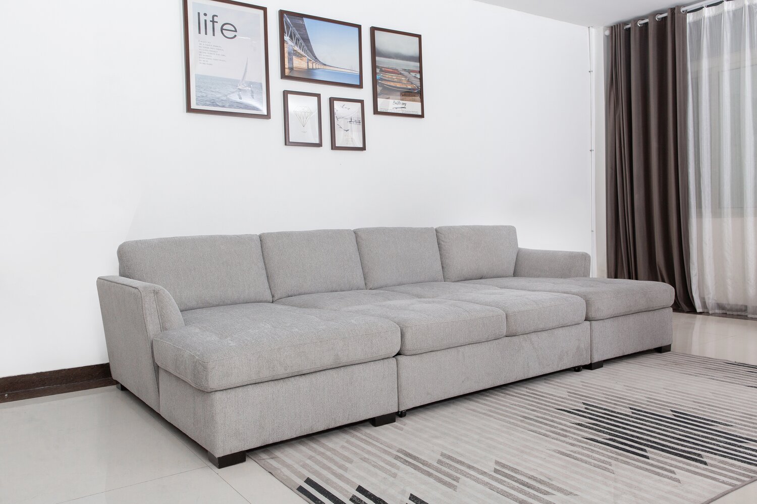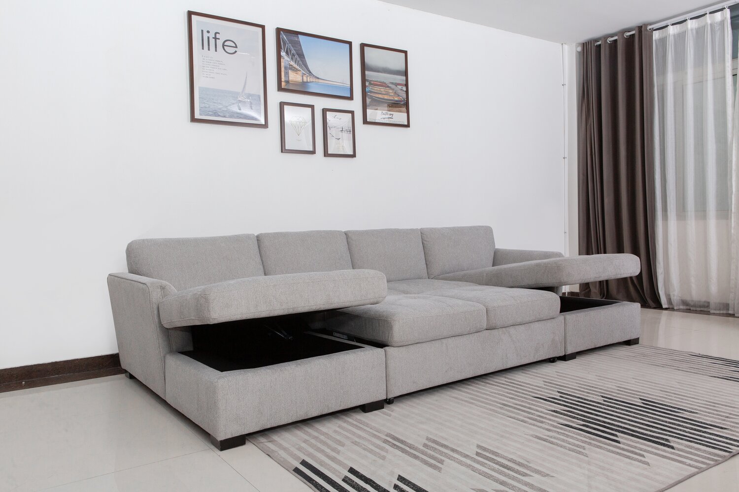 Vault 3-Piece Sectional with Sofa Bed Loveseat and Two Storage Chaises - Grey