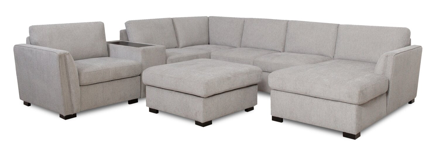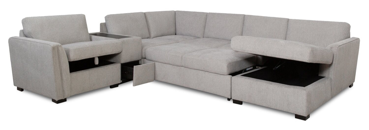 Vault 6-Piece Right-Facing Sectional with Sofa Bed Loveseat, Three Storage Chairs and Storage Chaise - Grey