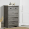 Traditional lines and beveled edges. This versa collection 5-drawer dresser offers a timeless look with ample storage. The beautiful beveled edges, curved kick plate, and straight metal handles make this dresser unqiue. It will pair easily with any interior theme and live through any remodels- making this the perfect dresser for anywhere in your home! Savy storage solution this dresser offers 5 large drawers with metal handles, perfect for organizing your belongings in each compartment. In addtion, this dresser can live in any bedroom in your home due to it's transferrable design and practical storage. Enjoy opening your drawers smoothly and quietly- these drawers feature metal slides on each side for easy use.