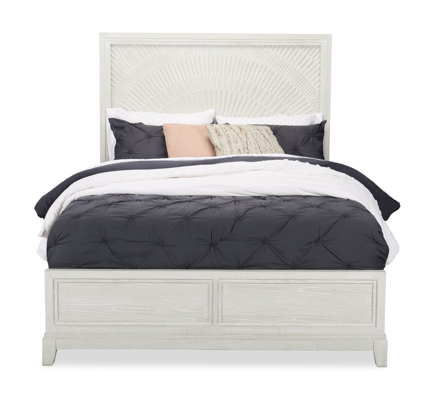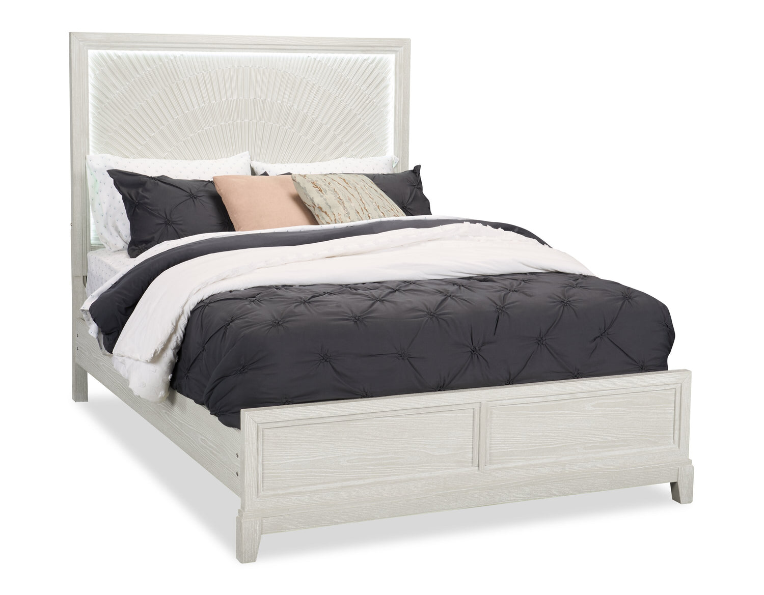 Ava Panel Bed with Headboard & Frame, LED, Glam, White - Queen Size