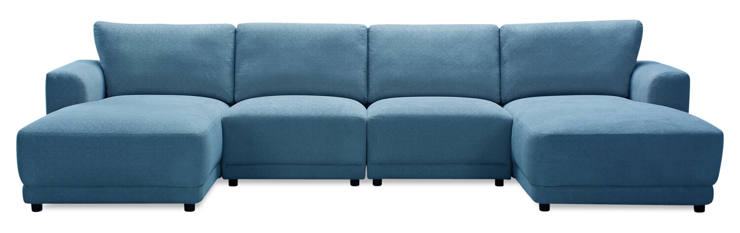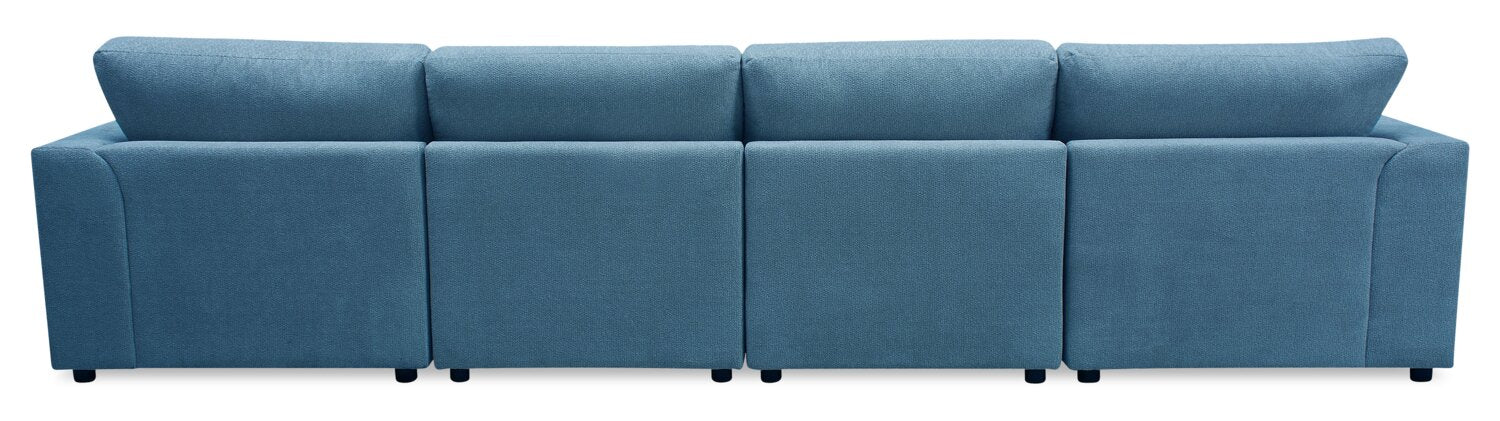 Create a relaxed and flexible living space with the Voyage Modular 4-Piece Fabric Sectional. Designed for everyday comfort, this sectional offers supportive seating with soft cushions that feel cozy and welcoming. High-quality blue polyester fabric brings a warm, calm look that works easily with many home styles. Its full modular design lets you arrange the pieces to fit your room and your lifestyle. Removable back cushions add comfort and make everyday care simple. With gentle support and soft seating, Voyage is perfect for stretching out, spending time together, and enjoying relaxed moments at home.