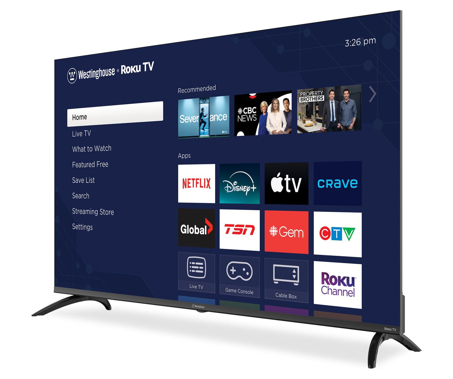| Additional Apps | Crave, BritBox, Acorn, Gem, Paramount+, Discovery+, Disney+, Apple TV+, Google Play, PBS, CNN, Spotify, Peloton, Pluto TV, Prime Video, Bravo, MLB, NFL, NHL, NBA |