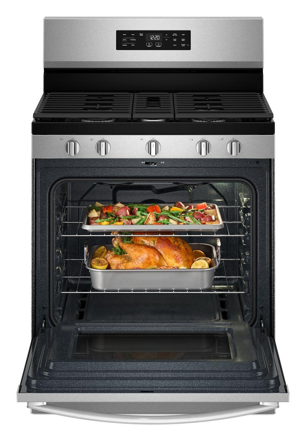 Air Cooking Technology: No Preheat Air Fry: Steam Clean: SpeedHeat™ Burner: Griddle Zone: Spacious Oven Capacity: |