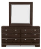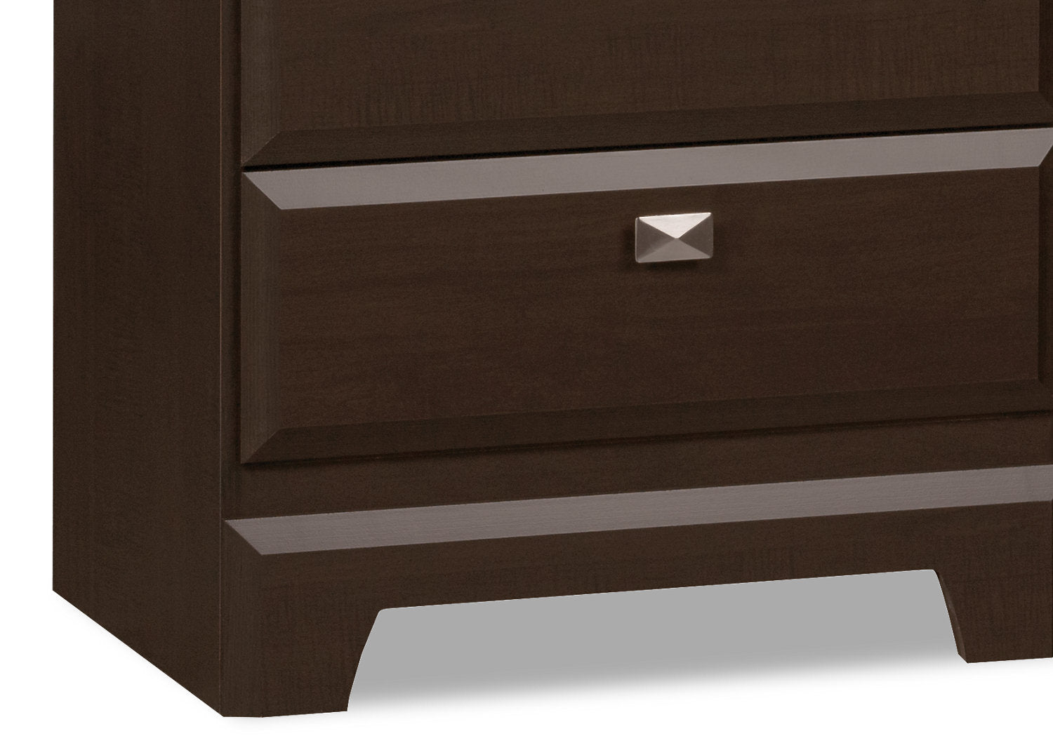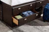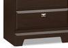 Simply modern, this Yorkdale bedroom package embodies style in every aspect. Its rich, dark saddle-birch finish will complement most existing decors, while its sleek pewter hardware enhances the style and appeal of this contemporary package. Plus, the 12 drawers in the bed base are dust-proof, and can hold a wide variety of household items.